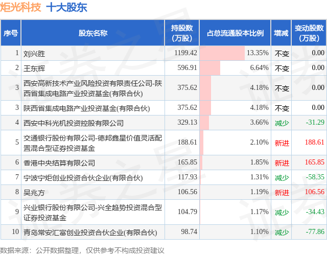 根据炬光科技2025年三季报公布的十大股东详情如下:股票配资交易安全